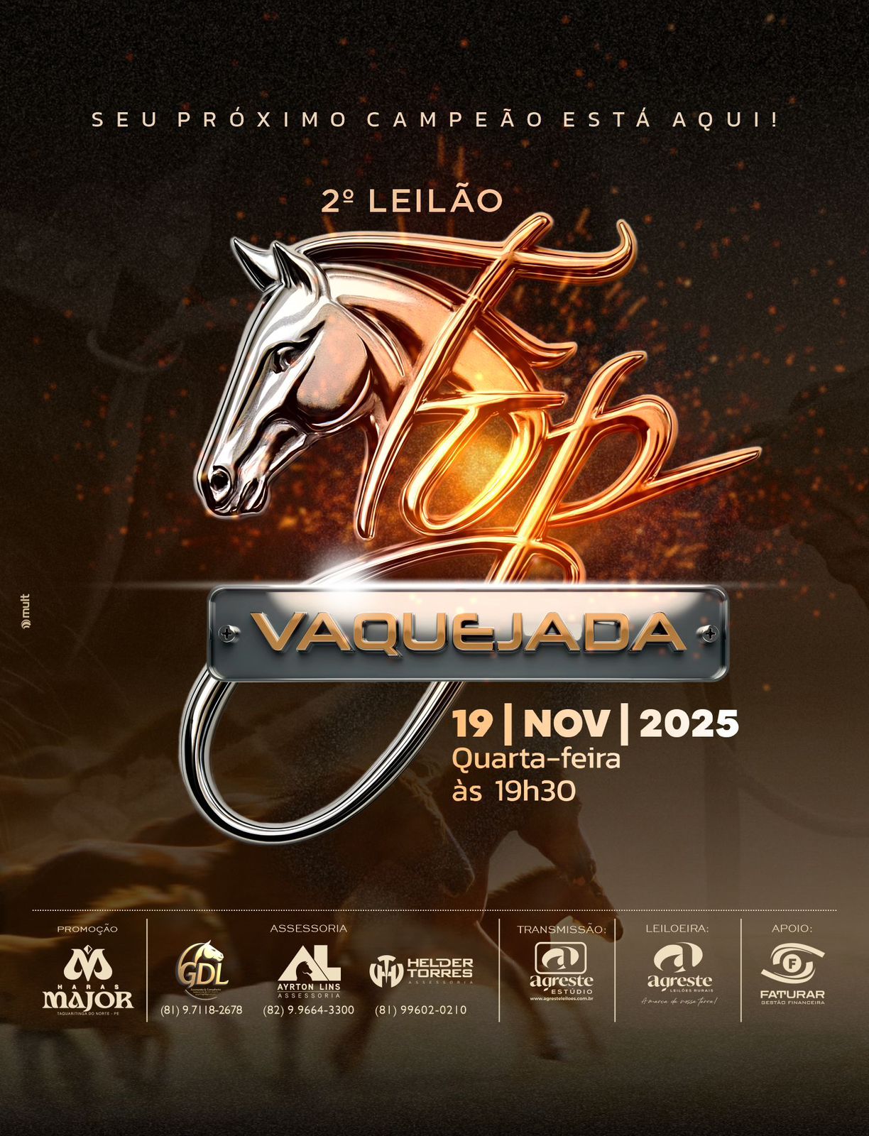 Transmissão: Transmissão: Canal Agreste Leilões no youtube e TV Vaquejada