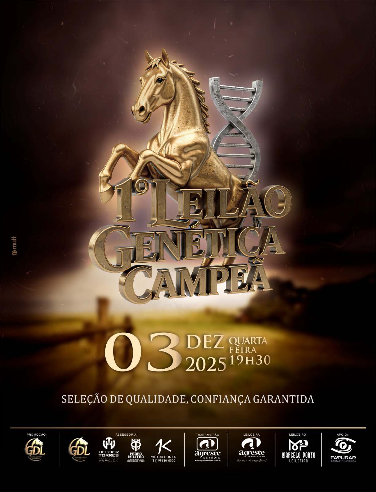 Local: Transmissão: Canal Agreste Leilões do YouTube, lance Rural, CTV e Canal Leilões