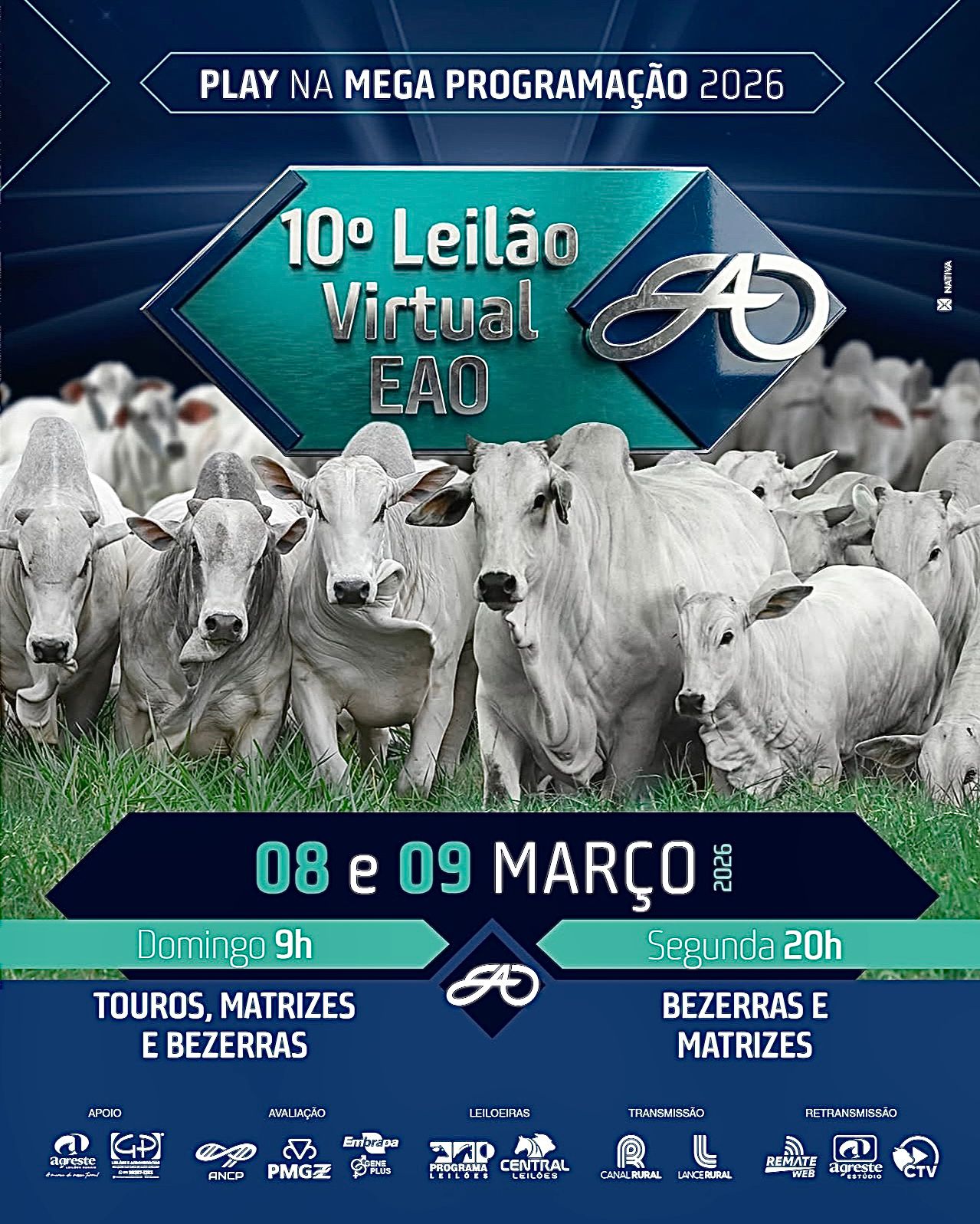 Local: Transmissão: Estúdio Agreste Leilões, RemateWeb e Lance Rural